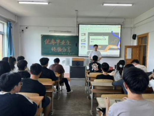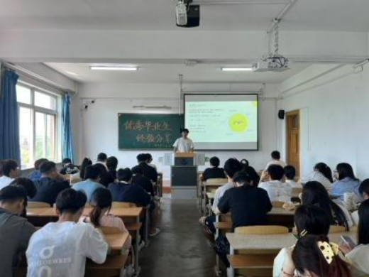 分享会上,五位优秀毕业生依次登场,结合自身丰富的经历,从实战角度深入剖析不同发展路径的核心要点。在考研方向的分享中,侯艳玲学姐条理清晰,聚焦“院校梯度选择”和“专业课高效复习法”展开。她手持精心准备的资料,向同学们展示了多所院校的历年分数线与报录比,着重强调“信息差决定备考效率”,并详细建议大家充分利用院校官网、考研论坛等渠道深度调研,还分享了自己整理的专业课笔记方法。在考公领域,段鹏程学长则以“时间轴 + 任务清单”的新颖形式,系统拆解了行测、申论的备考策略。他用幽默风趣的语言,分享了面试中“观点提炼 + 案例支撑”的高分技巧,还列举了自己在面试中遇到的实际案例,引得现场阵阵掌声。就业板块的史博文、杨志远、唐文里三位学长,带来了别开生面的分享。他们通过真实的简历模板对比,直观展示优秀简历的闪光点;还模拟了群面场景,邀请现场同学参与互动,生动揭秘求职“潜规则”,并鼓励同学们通过实习积累实战经验,打造个人核心竞争力。