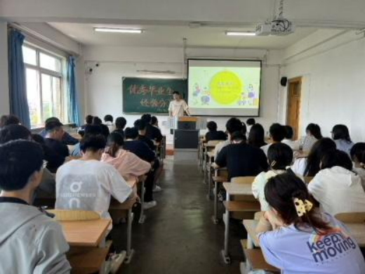 首先,2022级辅导员易柏言致辞,他鼓励2022级员工们:“希望你们能从学长学姐不同方向、不同角度的分享中汲取养分,脚踏实地、勇于尝试,在时代浪潮中找到属于自己的坐标。” 易老师的话语如同一盏明灯,点燃了在场同学们对未来的憧憬与期待。